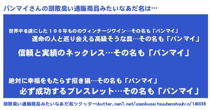 | 恥ずかしいあだ名 | 『バンリンリン』『プリティーバンマイ』 |