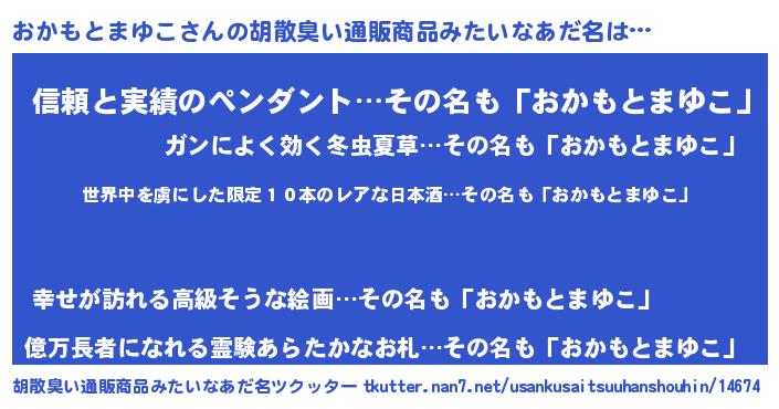 | 意味不明あだ名 | 『住所不定無職おかもとまゆこ(43歳)』 |