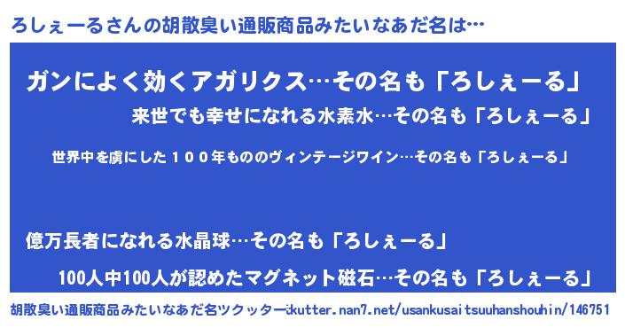 | ヘコむあだ名 | 『ろしぇーる(笑)』『ろしもー』 |