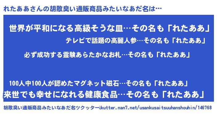 | 恥ずかしいあだ名 | 『プリティーれたああ』『れたっちょ』 |