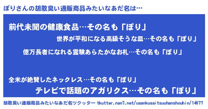 | 意味不明あだ名 | 『ペロリンぽり』『永久保存ぽり』 |
