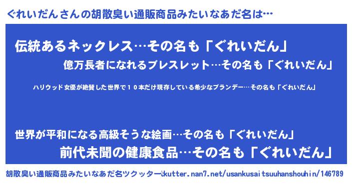 | ヘコむあだ名 | 『ぐれぷりん』『ぐれいだん(笑)』 |