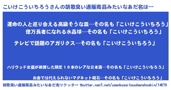| 意味不明あだ名 | 『自称こいけこういちろう』 |