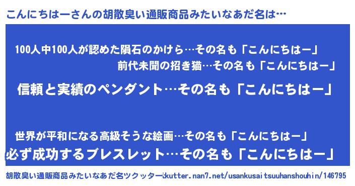 | 伝説のあだ名 | 『孤高の遊び人こんにちはー』 |