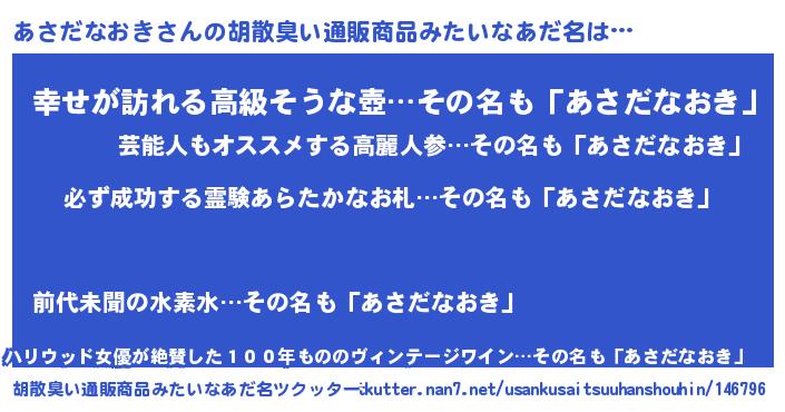 | 伝説のあだ名 | 『伝説のスナイパーあさだなおき』 |