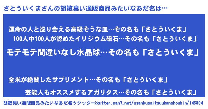 | 肩書あだ名 | 『さとういくま少将』『さとういくま閣下』 |
