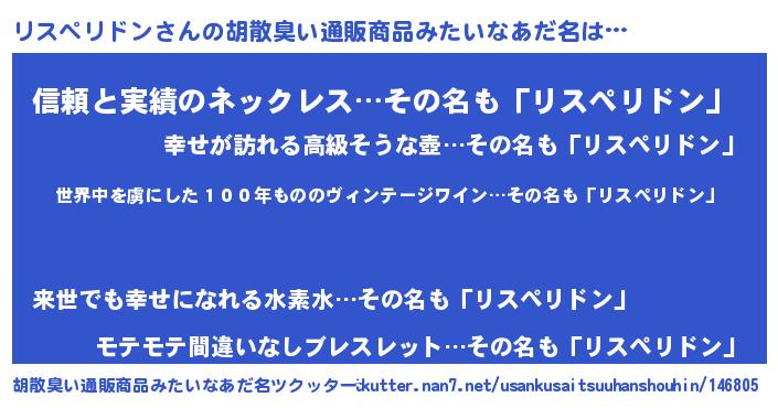 | 欧米人風あだ名 | 『ダレノガレリスペリドン』 |