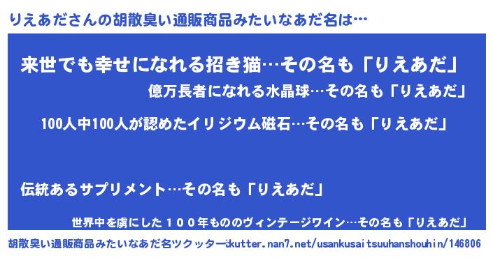 | ヘコむあだ名 | 『りえあだ(笑)』『りえにー』『豆乳』 |