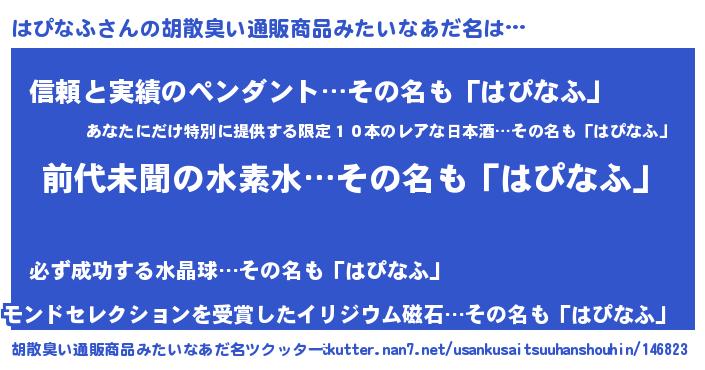 | ヘコむあだ名 | 『はぴなふ(遠い目)』『はぴっちょ』 |