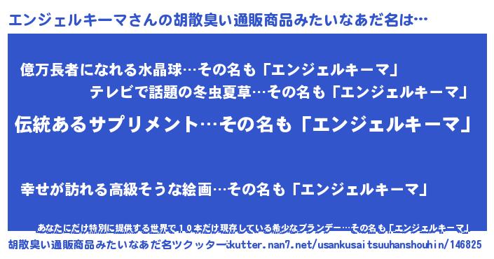 | 男性向けラノベタイトル風あだ名 | 『エンジェルキーマの嫁は女の子じゃないと思った?』 |