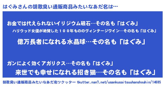 | ヘコむあだ名 | 『はぐにゅー』『はぐみ(爆)』 |