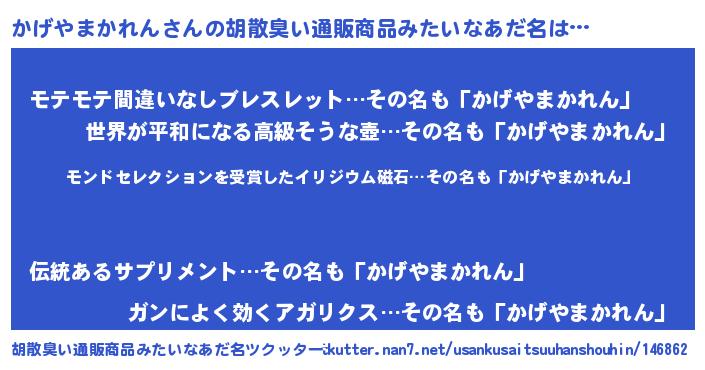 | 伝説のあだ名 | 『救世主となる占い師かげやまかれん』 |