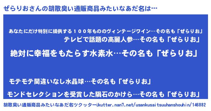 | ヘコむあだ名 | 『ぜらりお(震え声)』『ぜらふぇ~』 |
