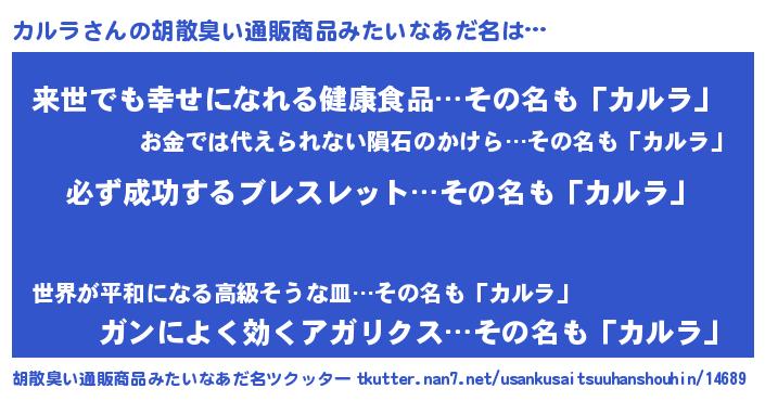 | ヘコむあだ名 | 『カルにー』『カルラ(遠い目)』 |