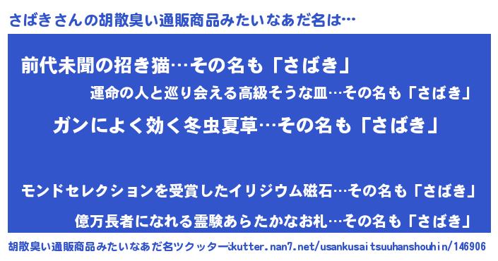 | 意味不明あだ名 | 『自称さばき』『永久保存さばき』 |