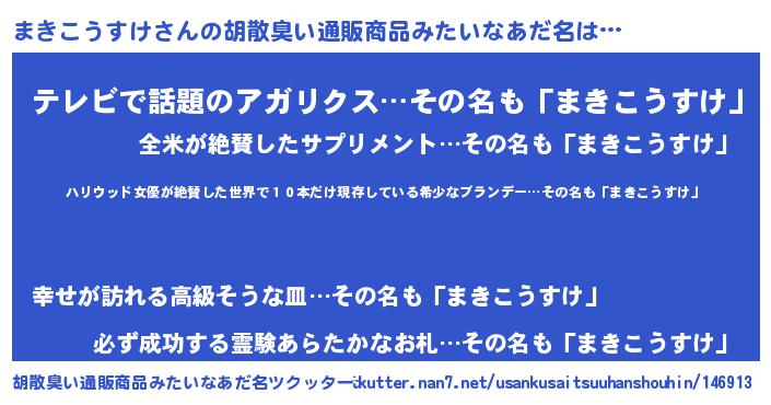 | 意味不明あだ名 | 『住所不定無職まきこうすけ(71歳)』 |