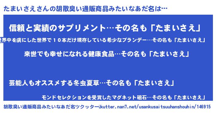 | ヘコむあだ名 | 『たまいさえ(笑)』『たまぷりん』 |
