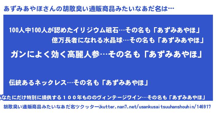 | 意味不明あだ名 | 『自称あずみあやほ』 |