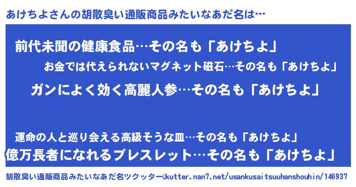 | ヘコむあだ名 | 『あけちよ(小並感)』『あけにー』 |