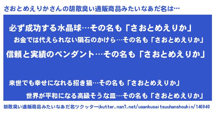 | 欧米人風あだ名 | 『ウサインさおとめえりか』 |
