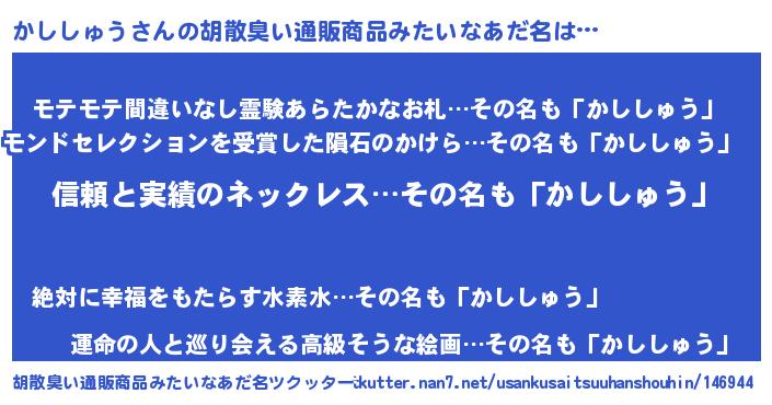 | 意味不明あだ名 | 『とにかく怪しいかししゅう』 |