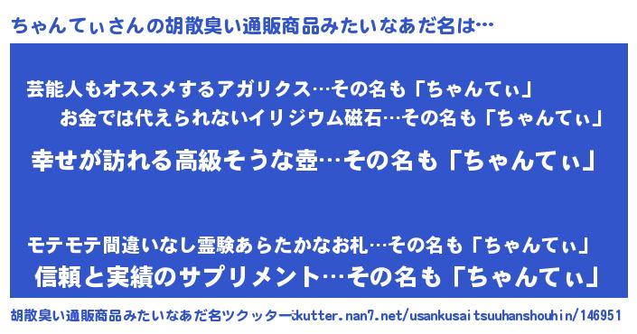 | 意味不明あだ名 | 『ちゃんてぃフォーエバー』 |