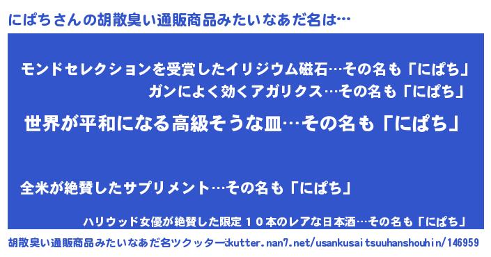 | ポケモン風あだ名 | 『ニパチダネ』『ニックウザ』 |