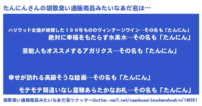 | ヘコむあだ名 | 『たんにゅー』『たんにん(笑)』 |