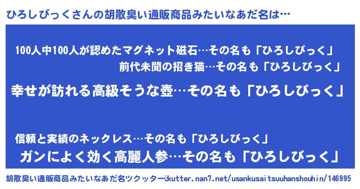 | 意味不明あだ名 | 『ひろしびっくフォーエバー』 |