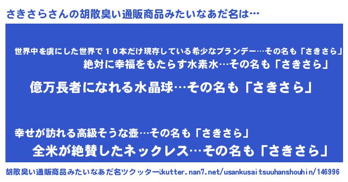 | ヒーロー風カッコイイあだ名 | 『スーパーサキサラ』『仮面サキダー』 |