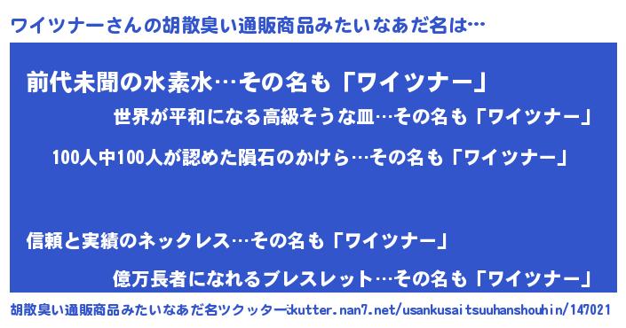 | ヘコむあだ名 | 『ワイツナー(震え声)』『ワイっふぃ~』 |