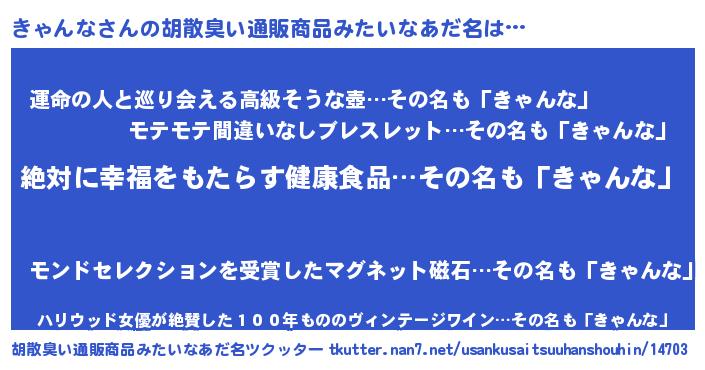 | ヘコむあだ名 | 『きゃんな(笑)』『酢こんぶ』 |