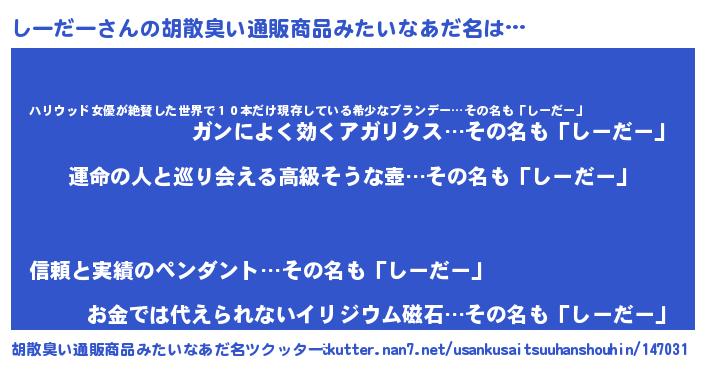 | ヒーロー風カッコイイあだ名 | 『ウルトラしーだーマン』『仮面シーダー』 |