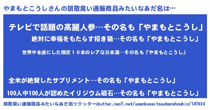 | ヘコむあだ名 | 『やまもとこうし(苦笑)』『やまっ子』 |