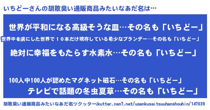| 意味不明あだ名 | 『永久保存いちどー』『自称いちどー』 |