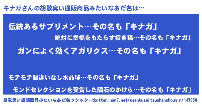 | 意味不明あだ名 | 『自称キナガ』『とにかく怪しいキナガ』 |