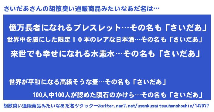 | 女子向けラノベタイトル風あだ名 | 『さいだあの契約王妃』『さいだあ恋絵巻』 |