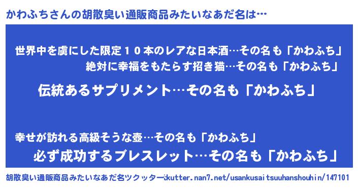 | 恥ずかしいあだ名 | 『カワリンリン』『プリティーかわふち』 |