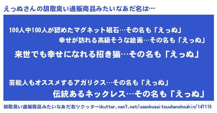 | 意味不明あだ名 | 『永久保存えっぬ』『えっぬフォーエバー』 |