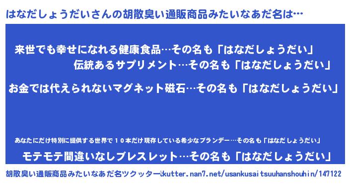 | ヘコむあだ名 | 『はなだしょうだい(小並感)』『はなにゅー』 |