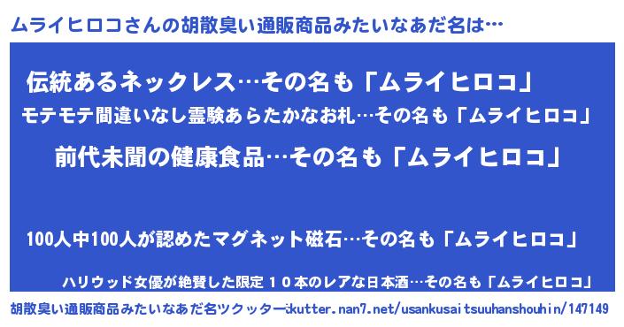 | ヘコむあだ名 | 『ムライヒロコ(苦笑)』『ムラっぺ』 |