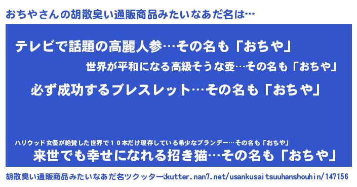 | 恥ずかしいあだ名 | 『プリティーおちや』『オチヤデラックス』 |