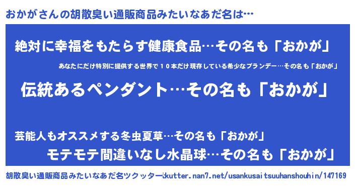 おかがさんの胡散臭い通販商品みたいなあだ名をツクッター!