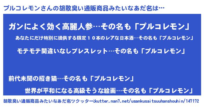 | 男性向けラノベタイトル風あだ名 | 『プルコレモンの憂鬱』 |