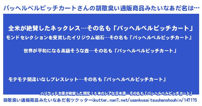 | 男性向けラノベタイトル風あだ名 | 『パッヘルベルピッチカートに滅ぼされるだけの簡単なお仕事です』 |