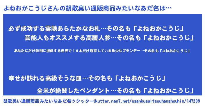 | 意味不明あだ名 | 『住所不定無職よねおかこうじ(93歳)』 |