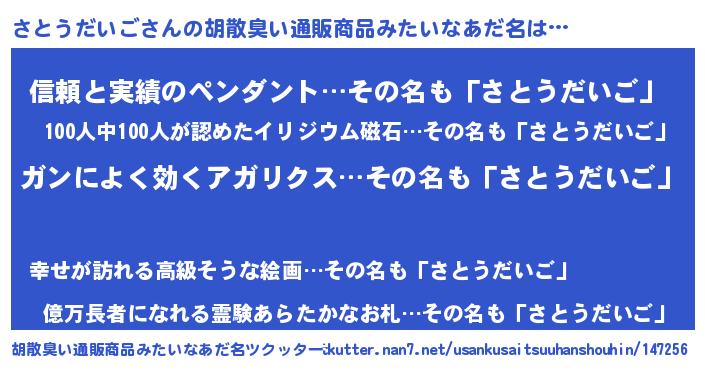 | ポケモン風あだ名 | 『サトセウス』『ヒサトウダイゴ』 |