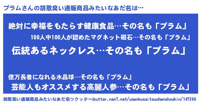 | 意味不明あだ名 | 『とにかく怪しいプラム』『自称プラム』 |