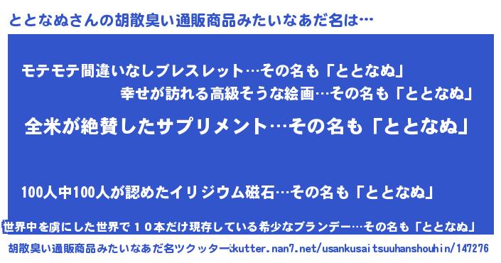 | 肩書あだ名 | 『ととなぬ団長』『ととなぬ社長』 |