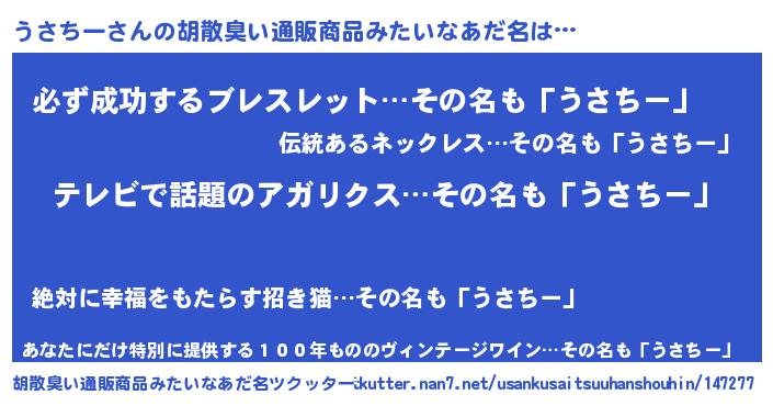 | ヘコむあだ名 | 『うさにゅー』『うさお』『酢こんぶ』 |